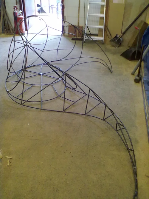 With the collaboration of metal worker, David Hazel, we bent the metal, cut and welded the inner metal frame, adapting the process to accommodate changes to the choreography and improve the strength and balance of the structure.